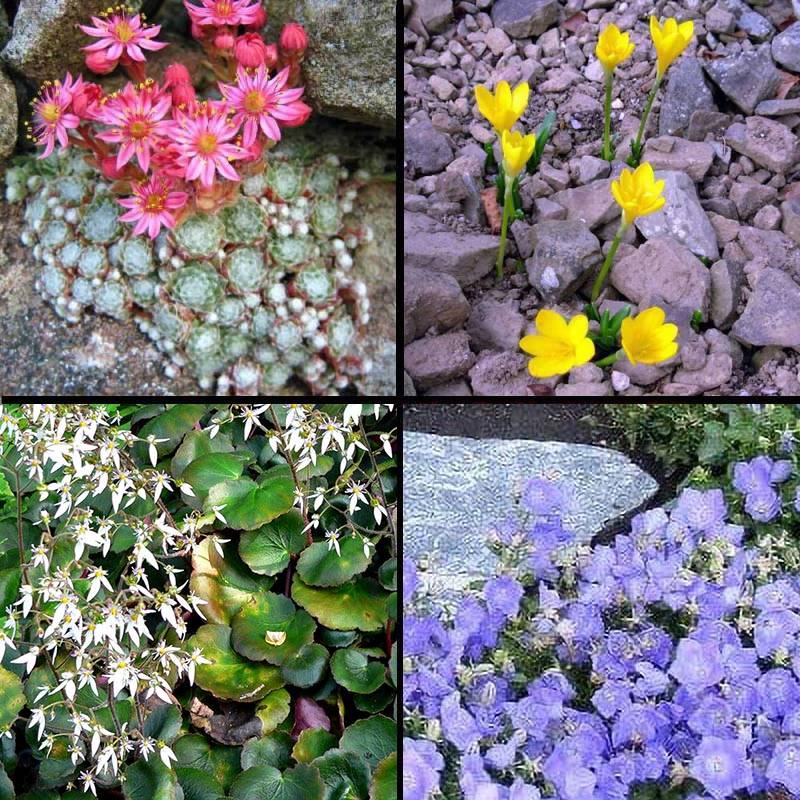 Rock garden flowers that bloom in succession from spring to fall. Plant in patches, each plant reaching 50 cm or more in diameter at maturity.