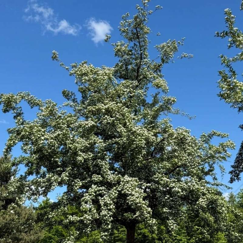 Crataegus × grignonensis is a charming small ornamental tree prized for its abundant spring flowering and naturally elegant habit. In spring it becomes covered in masses of fragrant white blossoms, followed by decorative berries that add autumn interest and attract birds.