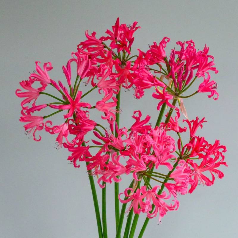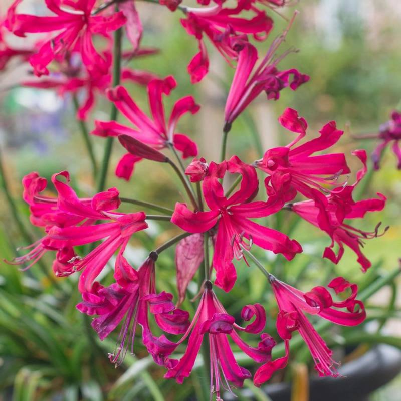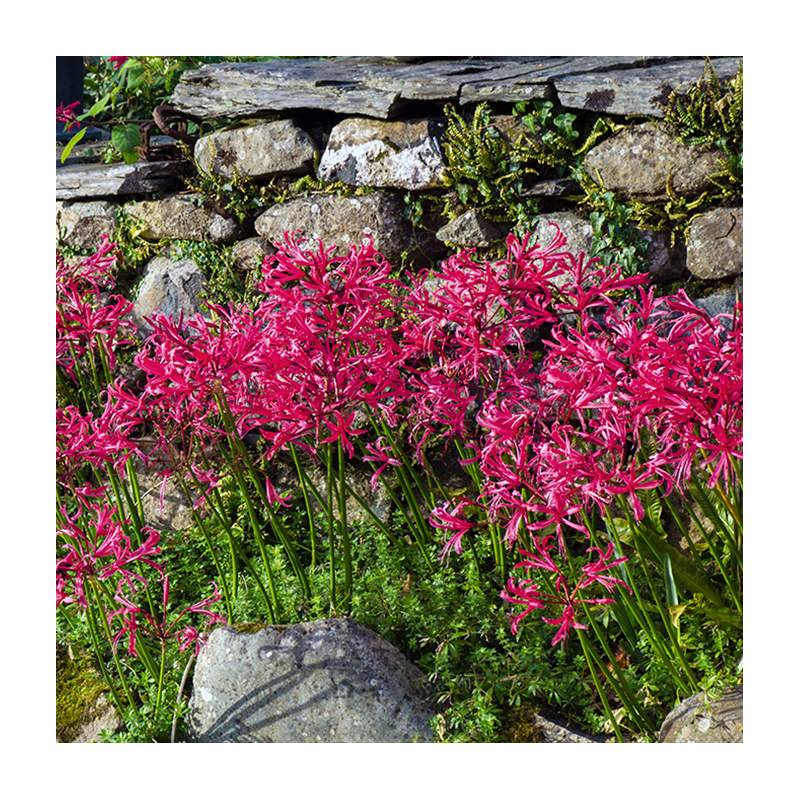 Few plants brighten up the autumn garden like Nerine. These flowering bulbs provide the last big splashes of floral colour of the year and no garden is complete without them. And if you want a real show-stopper then you can't help but grow Nerine 'Pearls of Cherry'. Magnificent reddish pink-pink flowers, slightly frilled, with a lovely pearly sheen. Nerine 'Pearls of Cherry' was selected by its breeders for its exceptional colour, also magnificent as a cut flower.