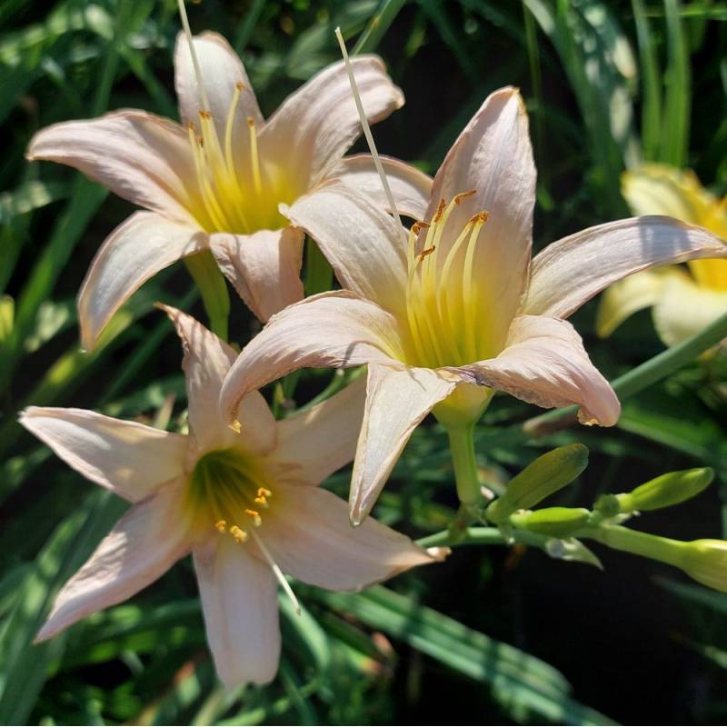 Spider flowers, that is, with narrow petals, curled at the ends, pink-lilac at the tips. 90 cm tall, the very large flowers have a diameter of 18 cm, evergreen. Early flowering from late spring.