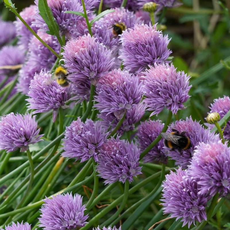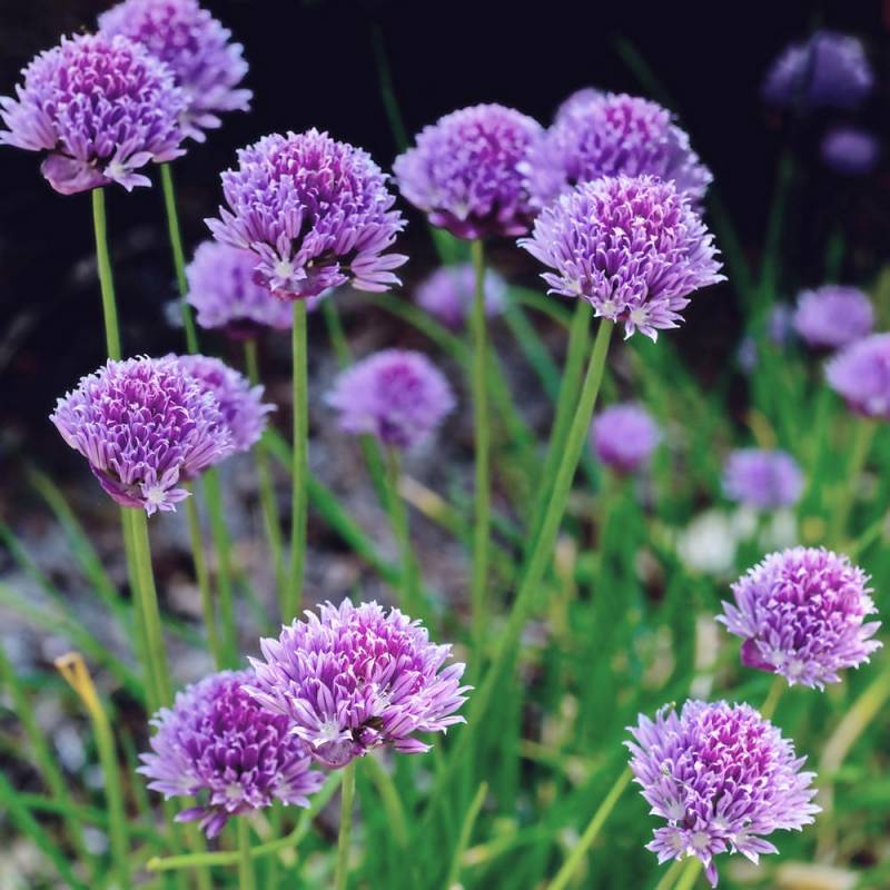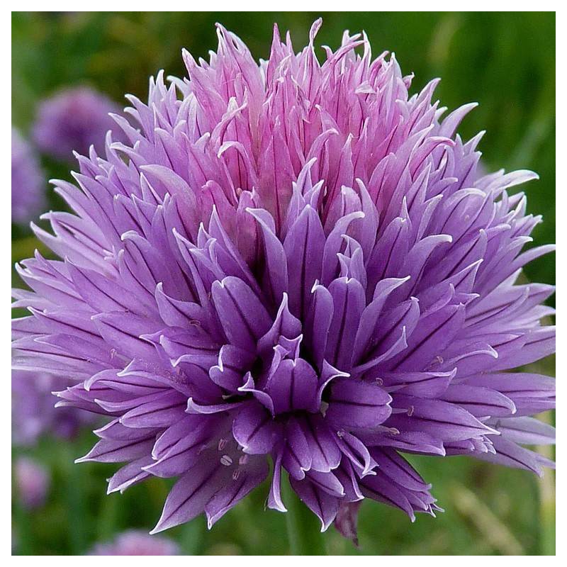 Chives are a perennial with onion-scented leaves and abundant beautiful long-lasting pale purple umbrella-shaped flowers from late spring through summer. This variety was selected by our nursery, it has fatter leaves and larger flowers.