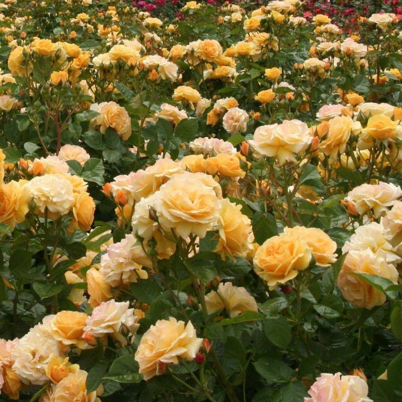 Colore del fiore: oro con toni di albicocca, trascolora man mano che si apre al giallo burro e al crema.