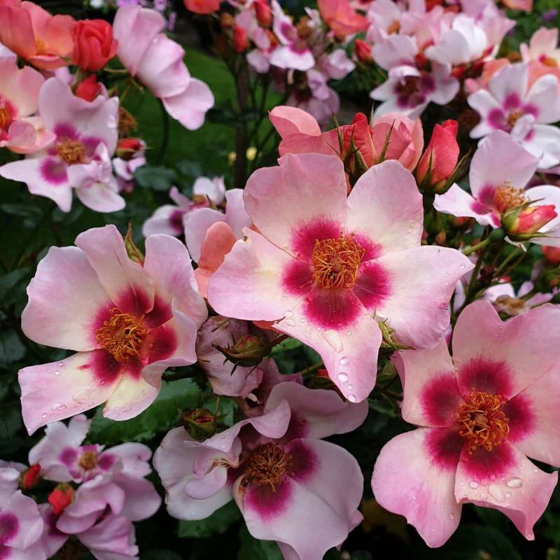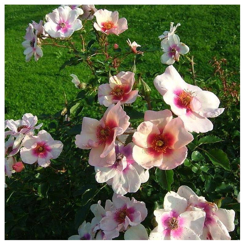 E' una rosa compatta arbustiva la cui caratteristica peculiare è il centro scuro del fiore, e i colori insoliti e cangianti dei petali.